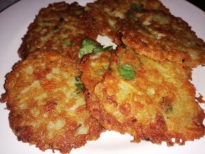 Na rozgrzanej patelni smażyć placki na złoty kolor. Podawać gorące.