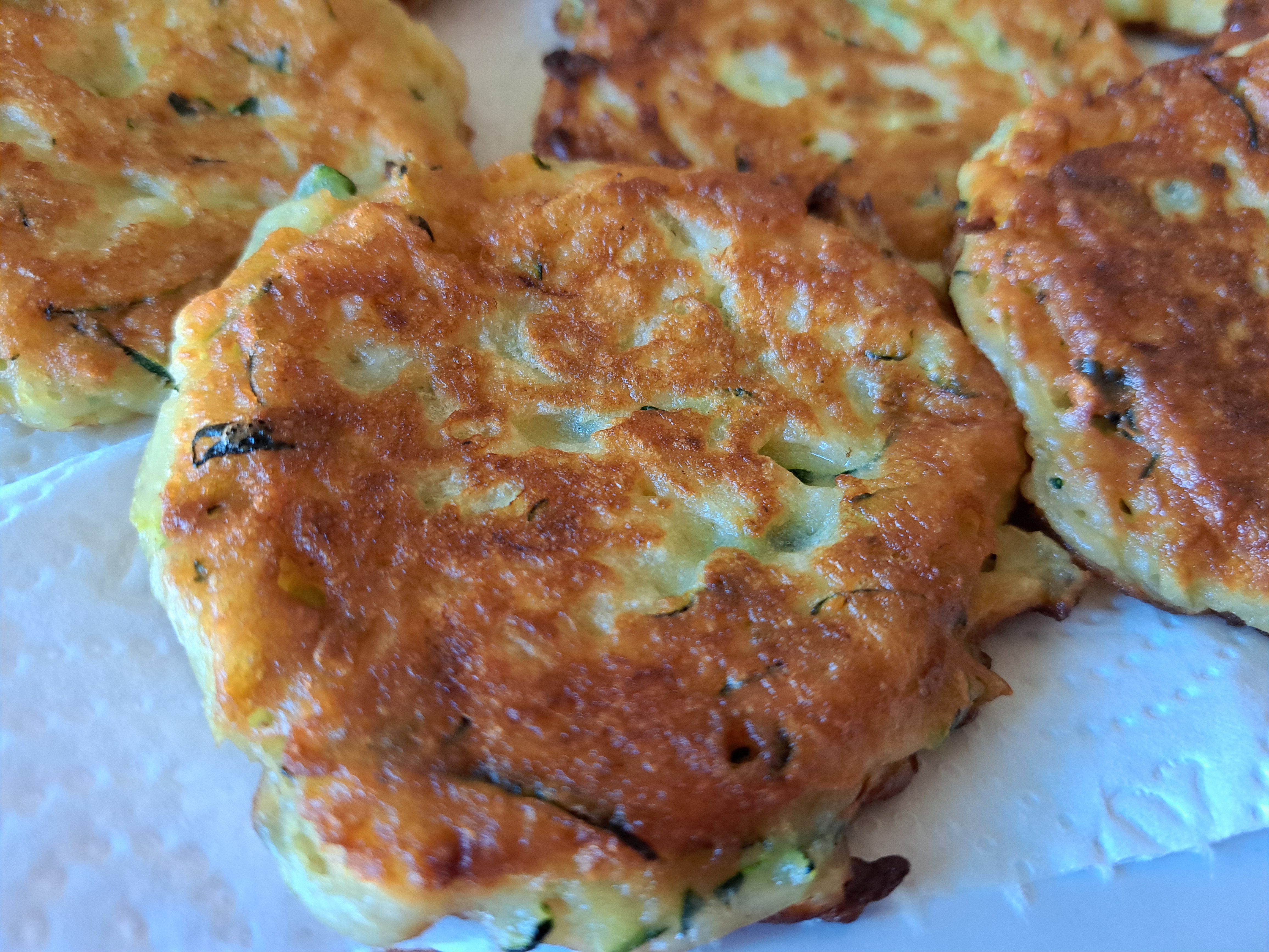 Cukinię umyć, nie obierać, zetrzeć na grubych oczkach, odstawić na 15 min. po czym odcisnąć z nadmiaru wody.