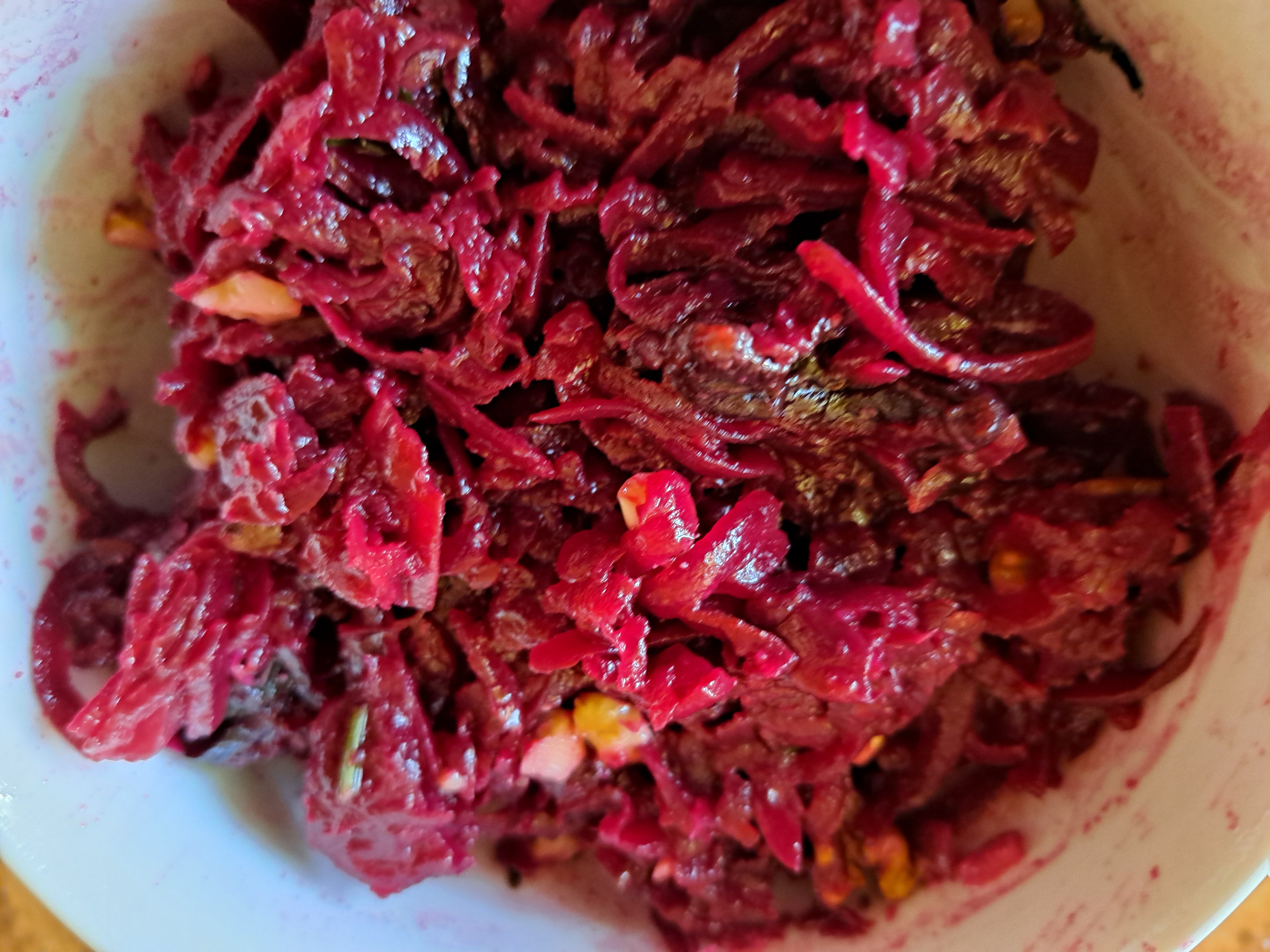 Sałatka z buraków ze śliwkami suszonymi i orzechami – gruzińska
