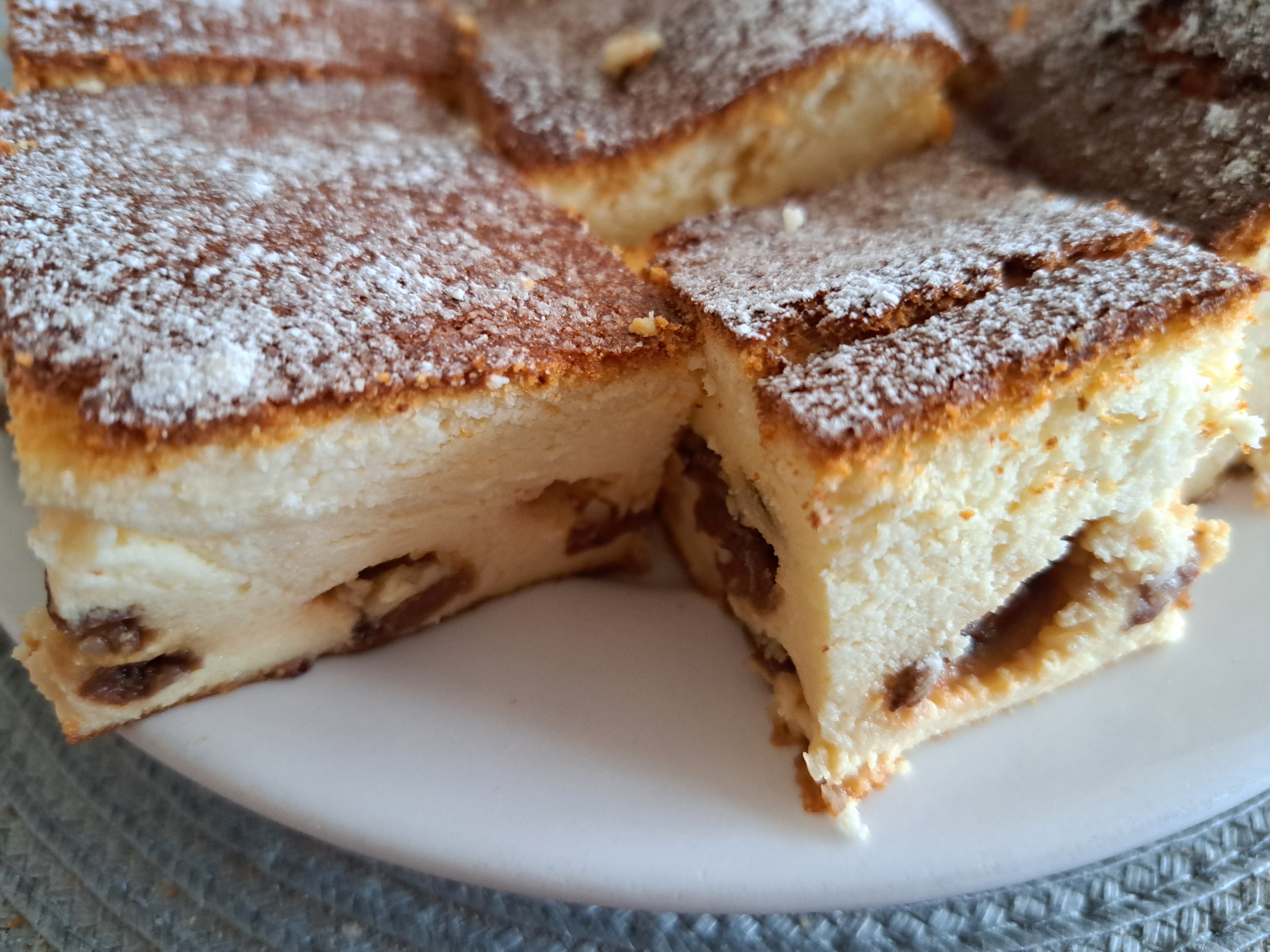 Gdy sernik zupełnie wystygnie, posypać go cukrem pudrem i wtedy dopiero kroić.