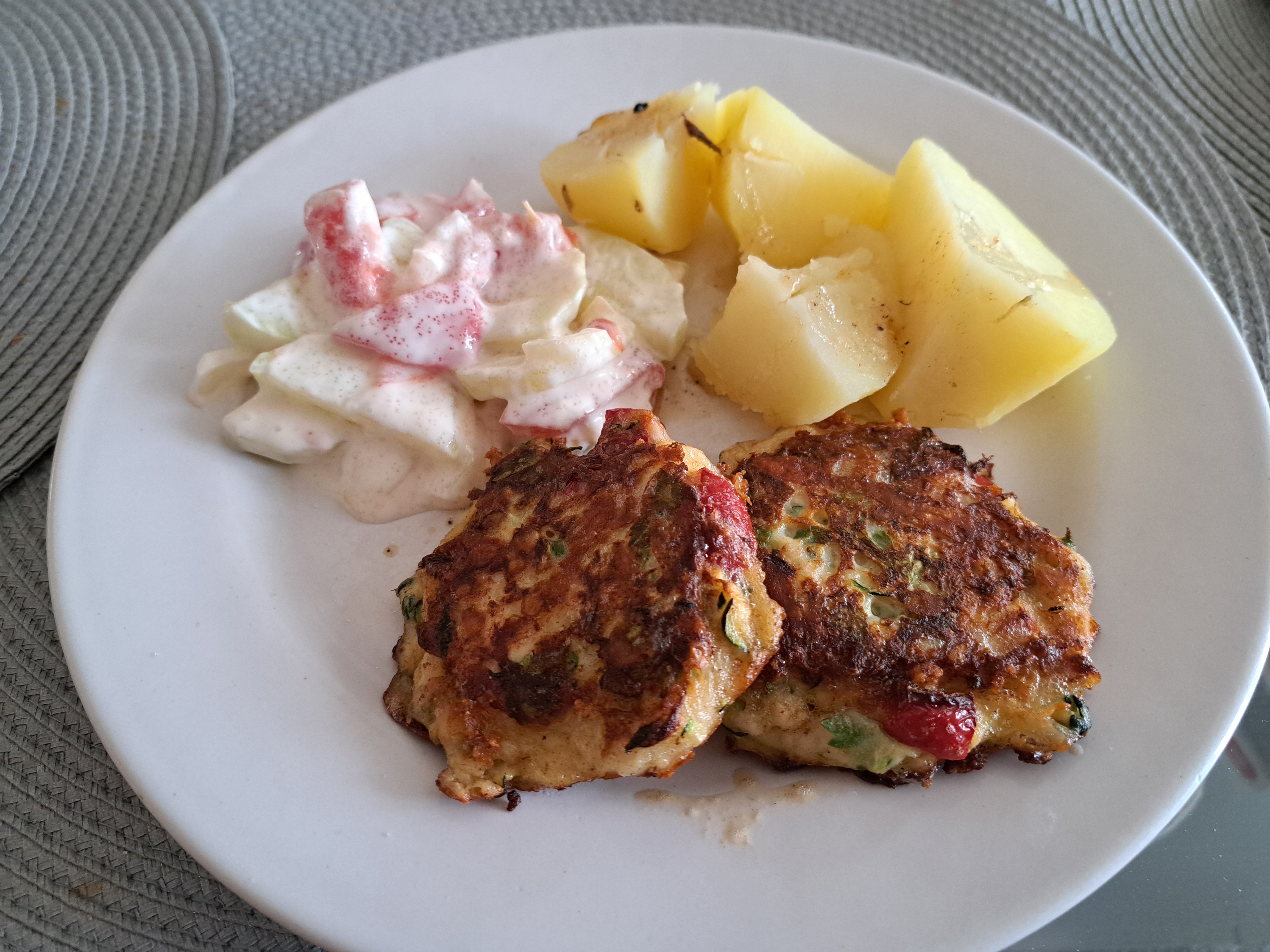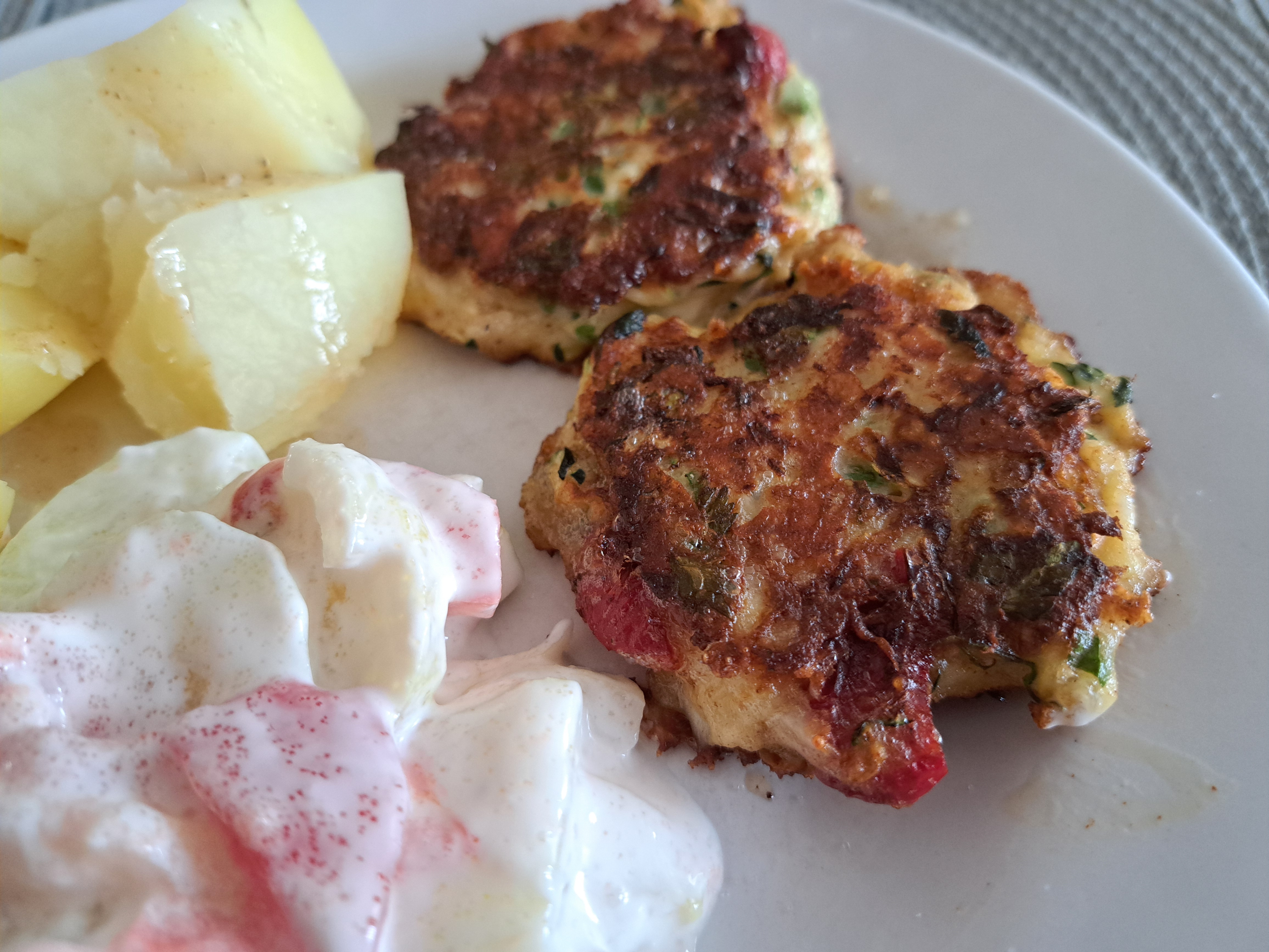 Formować łyżką nieduże kotleciki, smażyć na średnio rozgrzanym oleju na rumiano z obu stron. Odsączać z nadmiaru tłuszczu na papierowym ręczniku.