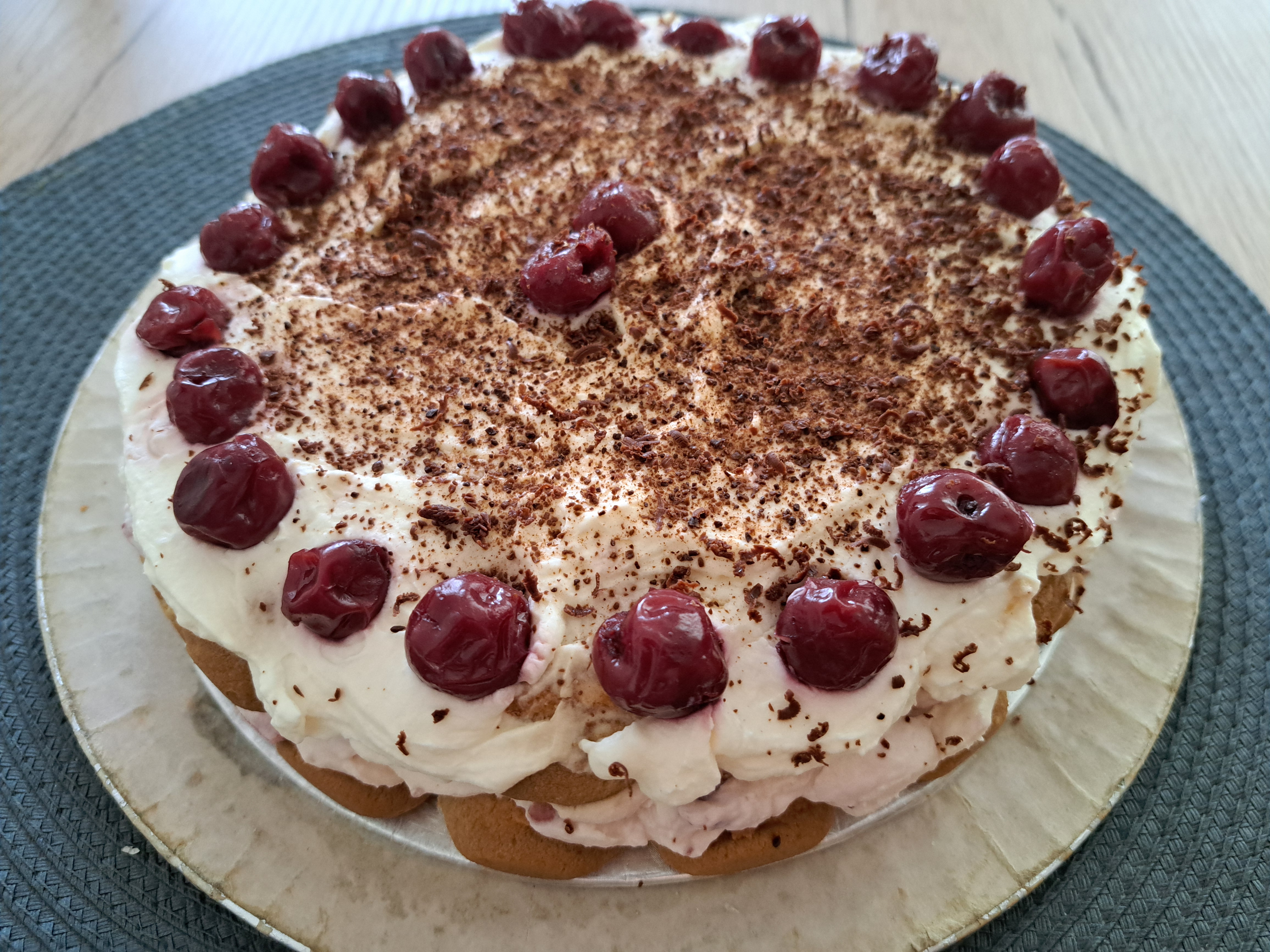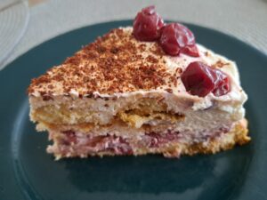 Torcik tiramisu wiśniowy na śmietankowym serku