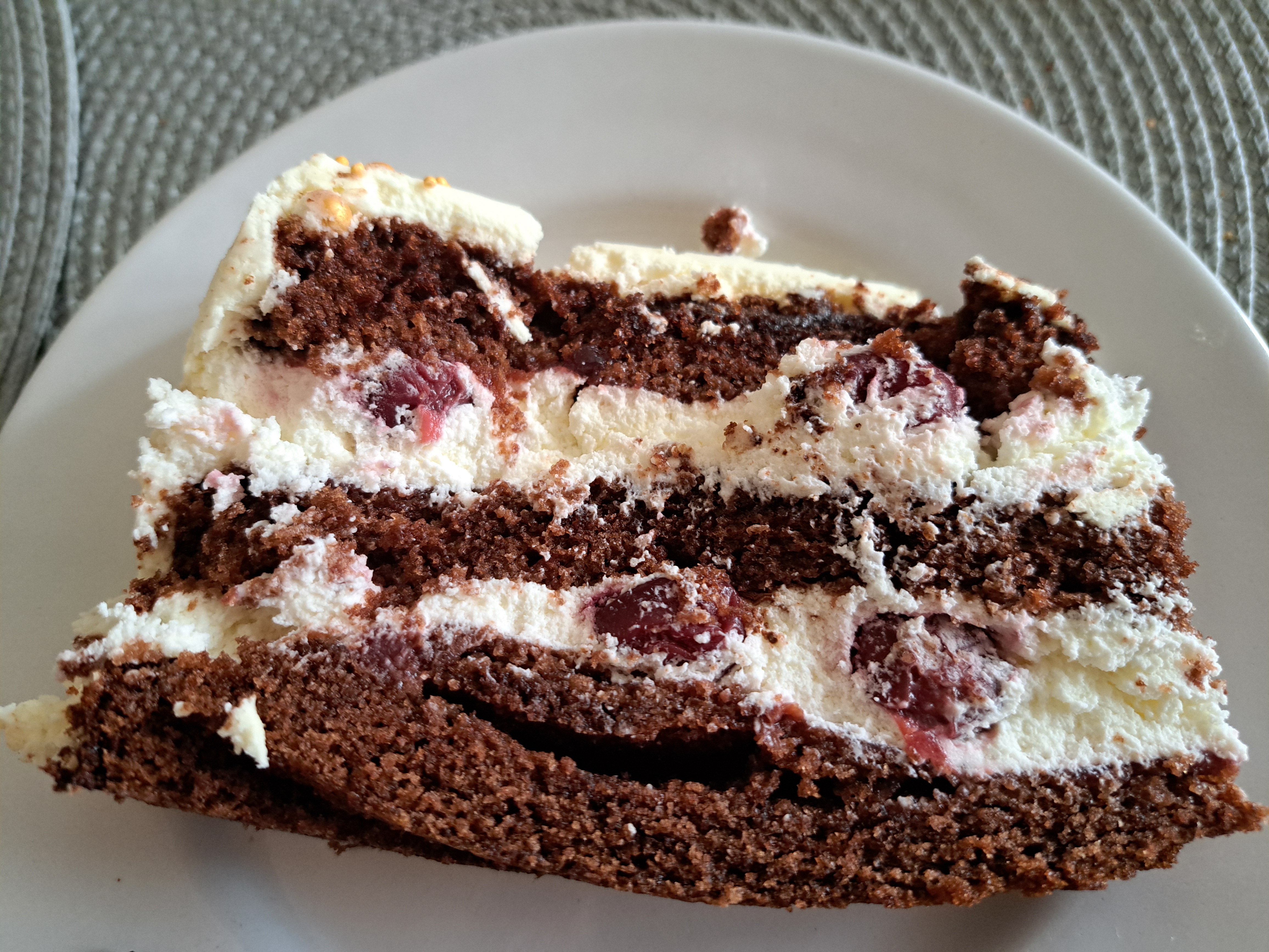 Tort czekoladowy z kremem mascarpone i wiśniami