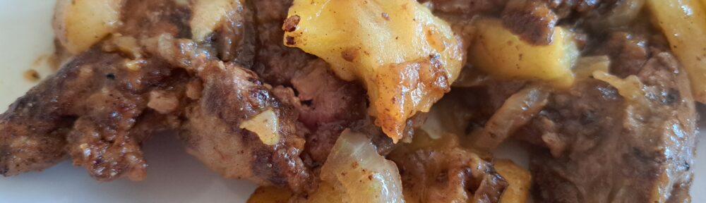 Wątróbka wskazana bardzo dla „anemików”, ale i dla wszystkich innych. Dotąd robiłam ją głównie smażoną z dodatkiem jabłkiem. Kiedyś jednak postanowiłam zamienić jabłko na gruszkę, a ponieważ miałam wtedy tylko jedną gruszkę, dodałam też śliwki. I to był strzał w 10!