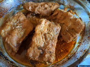 Po upływie czasu na marynatę żeberka przełożyć do żaroodpornego naczynia, zalać tą marynatą, naczynie przykryć i zapiekać je w nagrzanym do 160 st.C piekarniku przez ok. 1,5-2 godz. /ja wolę piec dłużej, ale w nieco niższej temperaturze/.