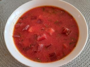 Zupa buraczkowa na bazie buraków kiszonych wyszła wprost rewelacyjna. Poniżej przepis.